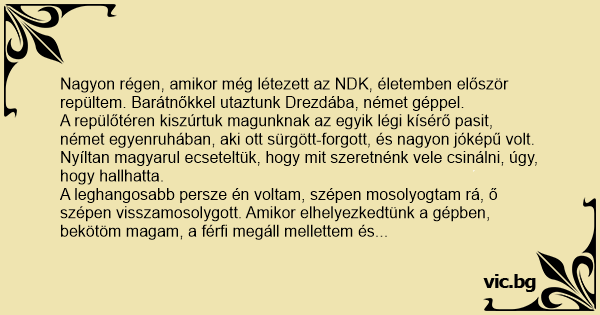 A leghangosabb persze én voltam, szépen mosolyogtam rá, ő szépen visszamosolygott. Amikor elhelyezkedtünk a gépben, bekötöm magam, a férfi megáll mellettem és kedvesen, a legtisztább magyarsággal megkérdezi: