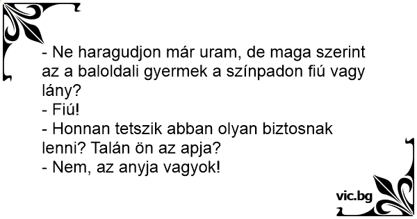 - Ne haragudjon már uram, de maga szerint az a baloldali gyermek a színpadon fiú vagy lány?