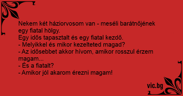 Nekem két háziorvosom van - meséli barátnőjének egy fiatal hölgy.