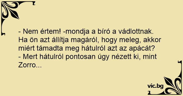 La tribunal, un homosexual este intrebat de judecator: - Inculpat, de ce ai violat-o pe biata calugarita? Doar tie nu-ti plac femeile! - Pai, domnule judecator, de la spate semana cu Zorro.
