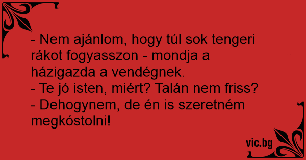 - Nem ajánlom, hogy túl sok tengeri rákot fogyasszon - mondja a házigazda a vendégnek.