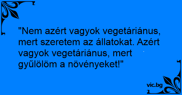 "Nem azért vagyok vegetáriánus, mert szeretem az állatokat. Azért vagyok vegetáriánus, mert gyűlölöm a növényeket!"