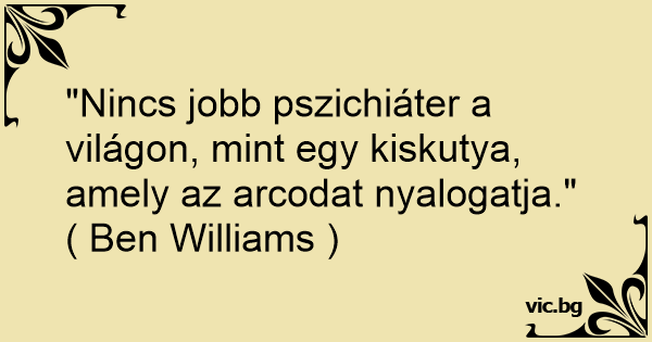 "Nincs jobb pszichiáter a világon, mint egy kiskutya, amely az arcodat nyalogatja."
