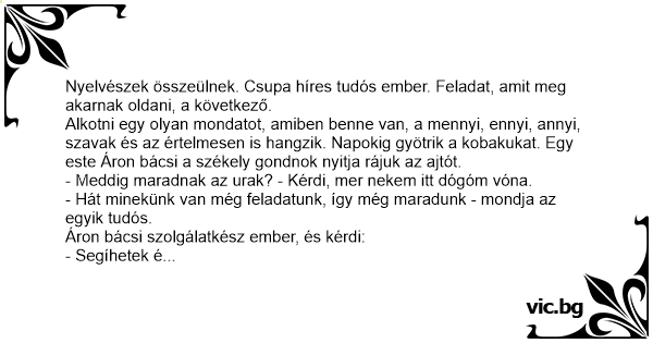Nyelvészek összeülnek. Csupa híres tudós ember. Feladat, amit meg akarnak oldani, a következő.