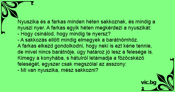 Nyuszika és a farkas minden héten sakkoznak, és mindig a nyuszi nyer. A farkas egyik héten megkérdezi a nyuszikát: