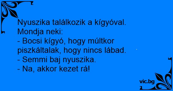 - Bocsi kígyó, hogy múltkor piszkáltalak, hogy nincs lábad.