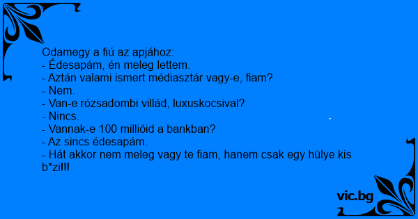Odamegy a fiú az apjához: -...
