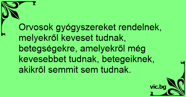 Orvosok gyógyszereket rendelnek, melyekről keveset tudnak, betegségekre, amelyekről még kevesebbet tudnak, betegeiknek, akikről semmit sem tudnak.