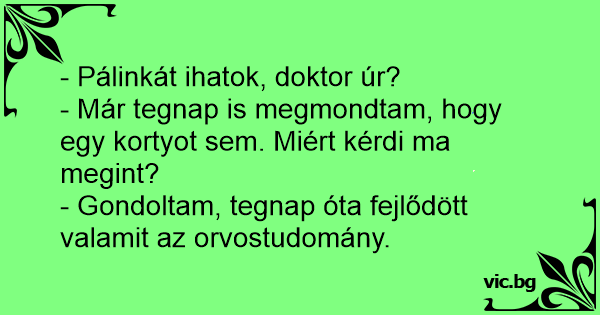 - Pálinkát ihatok, doktor úr?