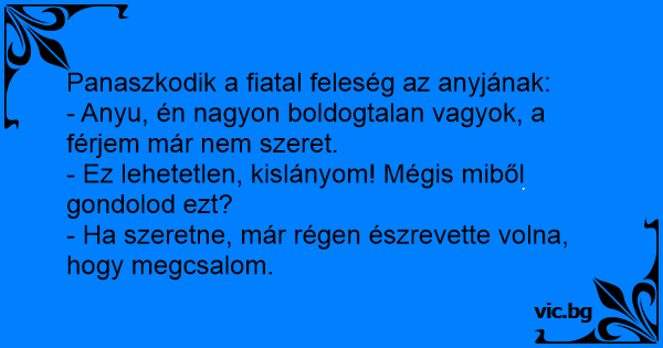 - Anyu, én nagyon boldogtalan vagyok, a férjem már nem szeret.