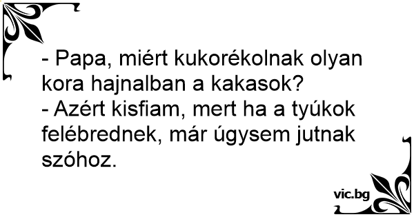 - Azért kisfiam, mert ha a tyúkok felébrednek, már úgysem jutnak szóhoz.
