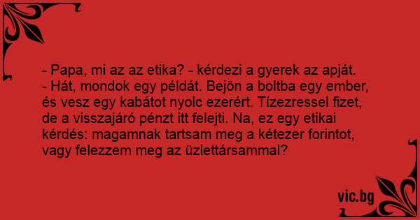 - Papa, mi az az etika? - kérdezi a gyerek az apját.