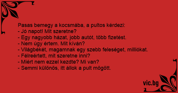 Pasas bemegy a kocsmába, a...