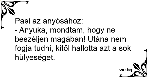 - Anyuka, mondtam, hogy ne beszéljen magában! Utána nem fogja tudni, kitől hallotta azt a sok hülyeséget.