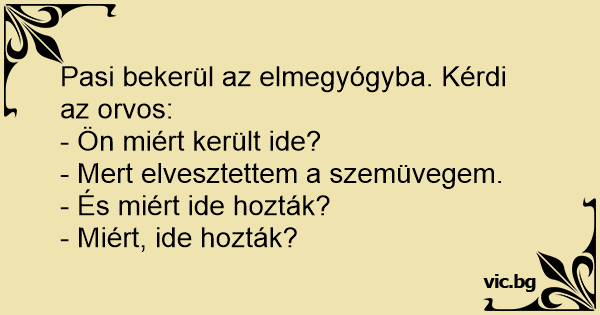 Pasi bekerül az elmegyógyba. Kérdi az orvos: