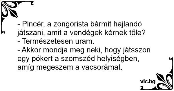 - Pincér, a zongorista bármit hajlandó játszani, amit a vendégek kérnek tőle?