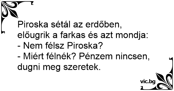 Piroska sétál az erdőben, előugrik a farkas és azt mondja: