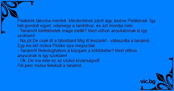 - Tanárnő! Idefekhetek maga mellé? Mert otthon anyukámnak is így szoktam!