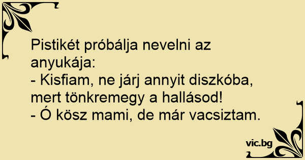 - Kisfiam, ne járj annyit diszkóba, mert tönkremegy a hallásod!