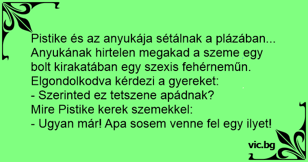 Anyukának hirtelen megakad a szeme egy bolt kirakatában egy szexis fehérneműn. Elgondolkodva kérdezi a gyereket: