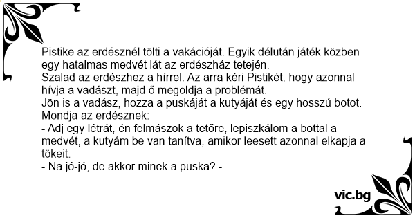 - Na jó-jó, de akkor minek a puska? - kérdi az erdész.