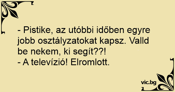- Pistike, az utóbbi időben egyre jobb osztályzatokat kapsz. Valld be nekem, ki segít??!