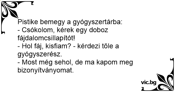 - Hol fáj, kisfiam? - kérdezi tőle a gyógyszerész.