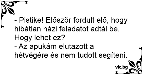 - Pistike! Először fordult elő, hogy hibátlan házi feladatot adtál be. Hogy lehet ez?