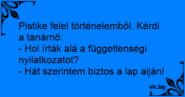 Pistike felel történelemből. Kérdi a tanárnő: