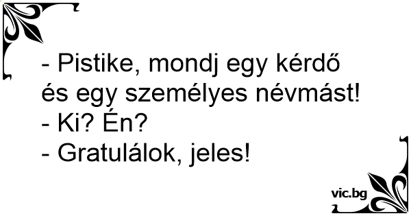 - Pistike, mondj egy kérdő és egy személyes névmást!