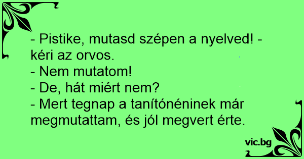 - Pistike, mutasd szépen a nyelved! - kéri az orvos.