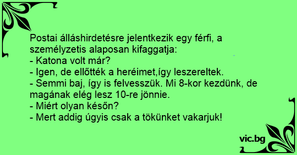 Postai álláshirdetésre jelentkezik egy férfi, a személyzetis alaposan kifaggatja: