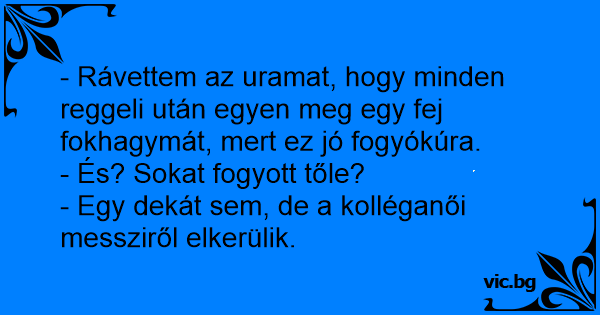 - Rávettem az uramat, hogy minden reggeli után egyen meg egy fej fokhagymát, mert ez jó fogyókúra.