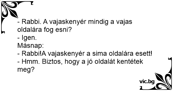 - Rabbi!A vajaskenyér a sima oldalára esett!