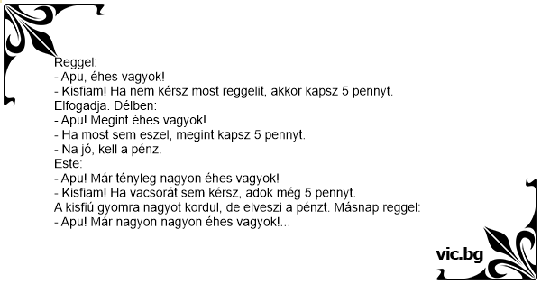 - Kisfiam! Ha vacsorát sem kérsz, adok még 5 pennyt.