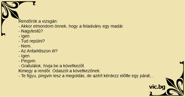 - Te figyu, pingvin lesz a megoldás, de azért kérdezz előtte egy párat, ne legyen feltűnő hogy már tudod!