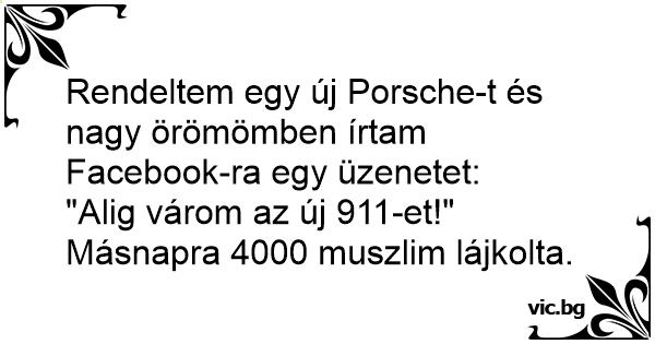 Поръчах ново Porsche и с удоволствие постнах съобщение във Facebook: "Нямам търпение за новото 911!". На другият ден имах около 40к харесвания от мюсюлмани.