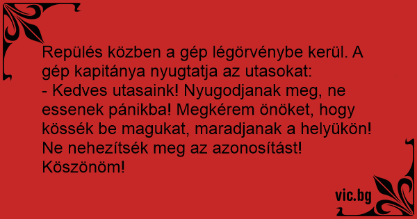 Repülés közben a gép légörvénybe kerül. A gép kapitánya nyugtatja az utasokat: