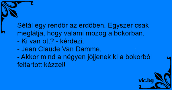 Sétál egy rendőr az erdőben. Egyszer csak meglátja, hogy valami mozog a bokorban.