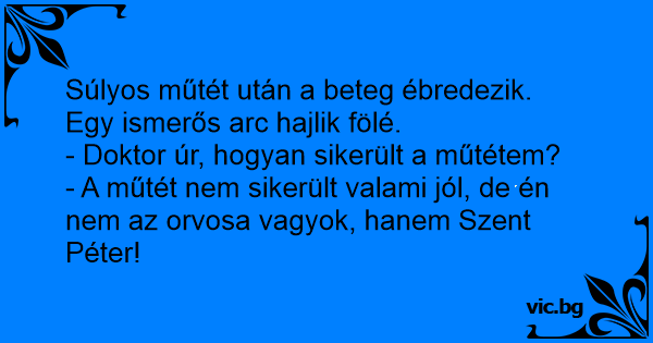 - A műtét nem sikerült valami jól, de én nem az orvosa vagyok, hanem Szent Péter!