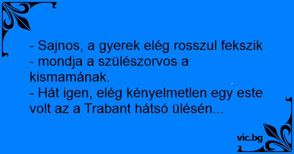 - Sajnos, a gyerek elég rosszul fekszik - mondja a szülészorvos a kismamának.