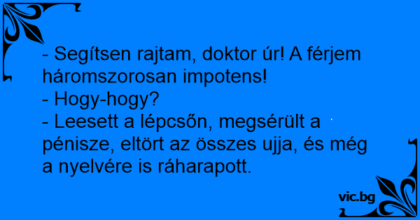 - Segítsen rajtam, doktor úr! A férjem háromszorosan impotens!