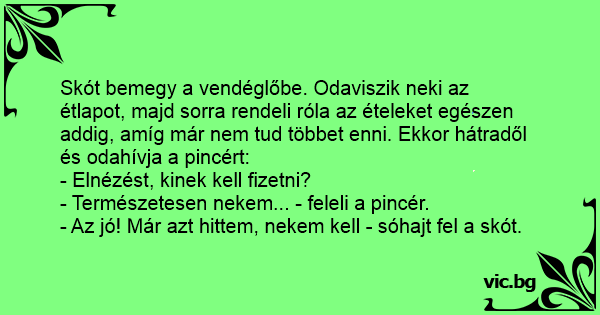 Skót bemegy a vendéglőbe....
