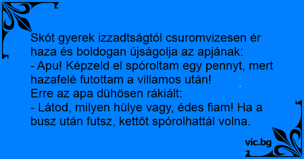 - Apu! Képzeld el spóroltam egy pennyt, mert hazafelé futottam a villamos után!