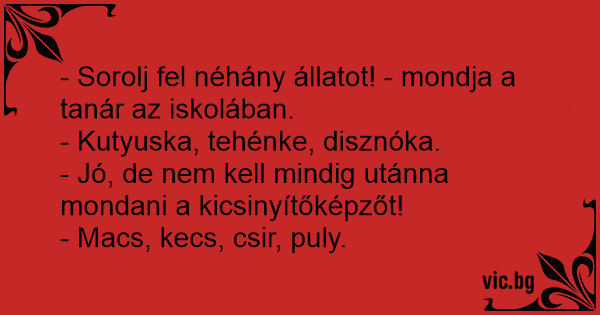 - Sorolj fel néhány állatot! - mondja a tanár az iskolában.