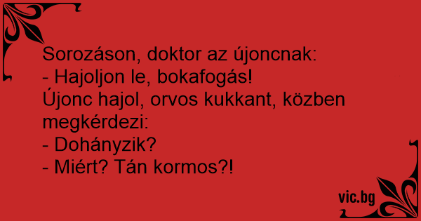 Újonc hajol, orvos kukkant, közben megkérdezi: