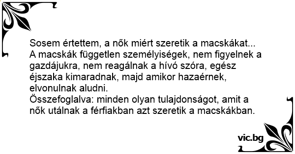Összefoglalva: minden olyan tulajdonságot, amit a nők utálnak a férfiakban azt szeretik a macskákban.
