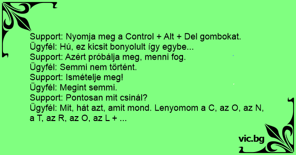 Ügyfél: Mit, hát azt, amit mond. Lenyomom a C, az O, az N, a T, az R, az O, az L + ...