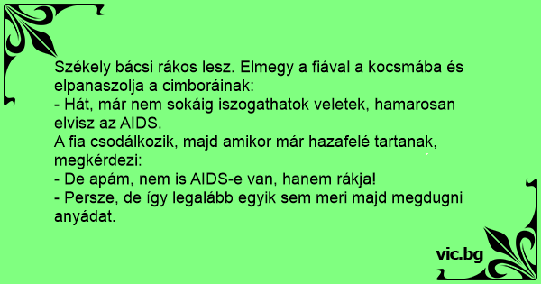- Hát, már nem sokáig iszogathatok veletek, hamarosan elvisz az AIDS.