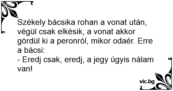 Székely bácsika rohan a vonat után, végül csak elkésik, a vonat akkor gördül ki a peronról, mikor odaér. Erre a bácsi: